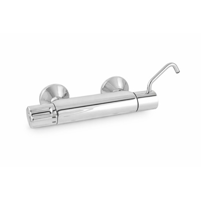 Bateria umywalkowa stojąca z uchwytem lekarskim i mieszaczem ceramicznym Ø 40 mm. Bateria wyposażona w automatyczny spust umywalkowy. Przyłącza: dwa wężyki w oplocie stalowym z końcówkami 3/8".